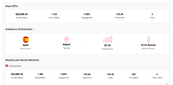 As we can see from the highest performing publications, #LoBorraTodo had a total Earned Media of 20,000$ on Instagram, impacted almost 2,000,000 people and had a 7% engagement rate. Furthermore, the majority of the impacted public were women (73.3%) between 24 and 35 years olds. In other words, the campaign was a complete success.