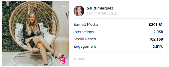 Results from @tuttimarquez’s post via Influencity’s software