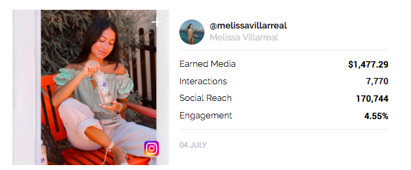 Results from @melissavillarreal’s post via Influencity’s software