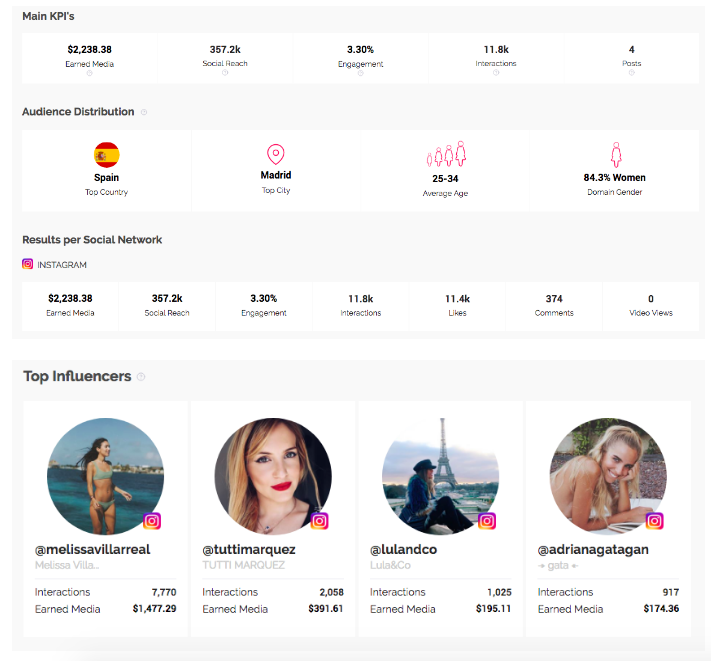 By using Influencity’s software, brands can see campaign results and analyse whether or not they were positive, just like Font Vella did with their campaign. It’s a very useful tool for checking the effectiveness of a campaign, drawing conclusions and tweaking strategies for future campaigns.