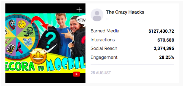 Resultados ofrecidos por el software de Influencity de la publicación de The Crazy Haacks.