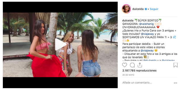 Now that we know the key points of Viajawäy’s well thought-out digital marketing strategy, let’s take a look at some of the influencers’ posts, more specifically, the giveaways we mentioned previously that @mariapombo and @dulceida promoted on their Instagram profiles.